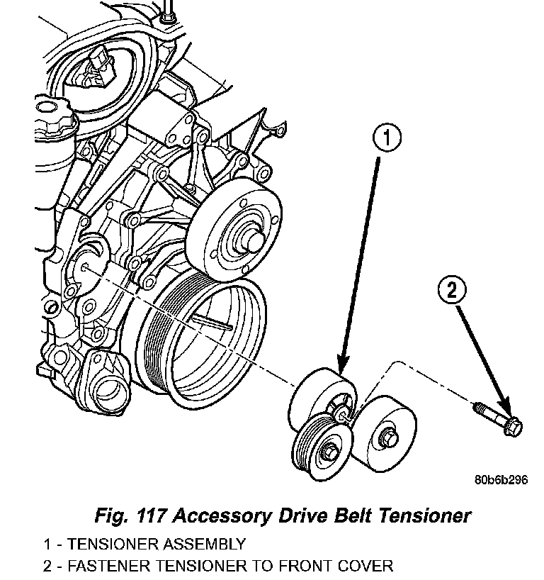 6. Remove accessory drive belt tensioner assembly (Fig. 117).