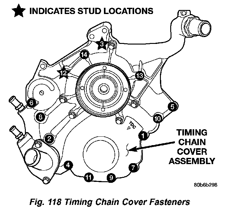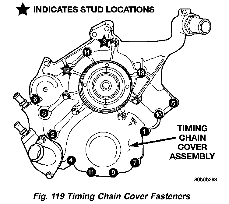 2. Install cover and gasket. Tighten fasteners in sequence as shown in (Fig. 119) to 54 Nm (40 ft. lbs.).