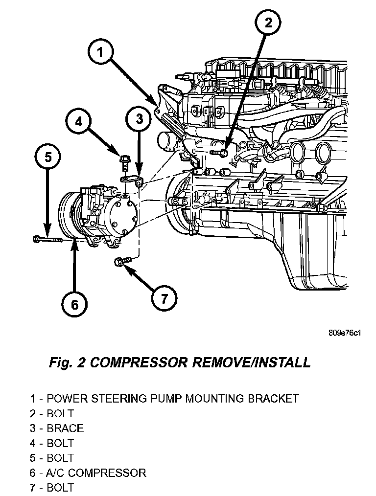 Fig.2 Compressor Remove/Install - 4.0L Engine: