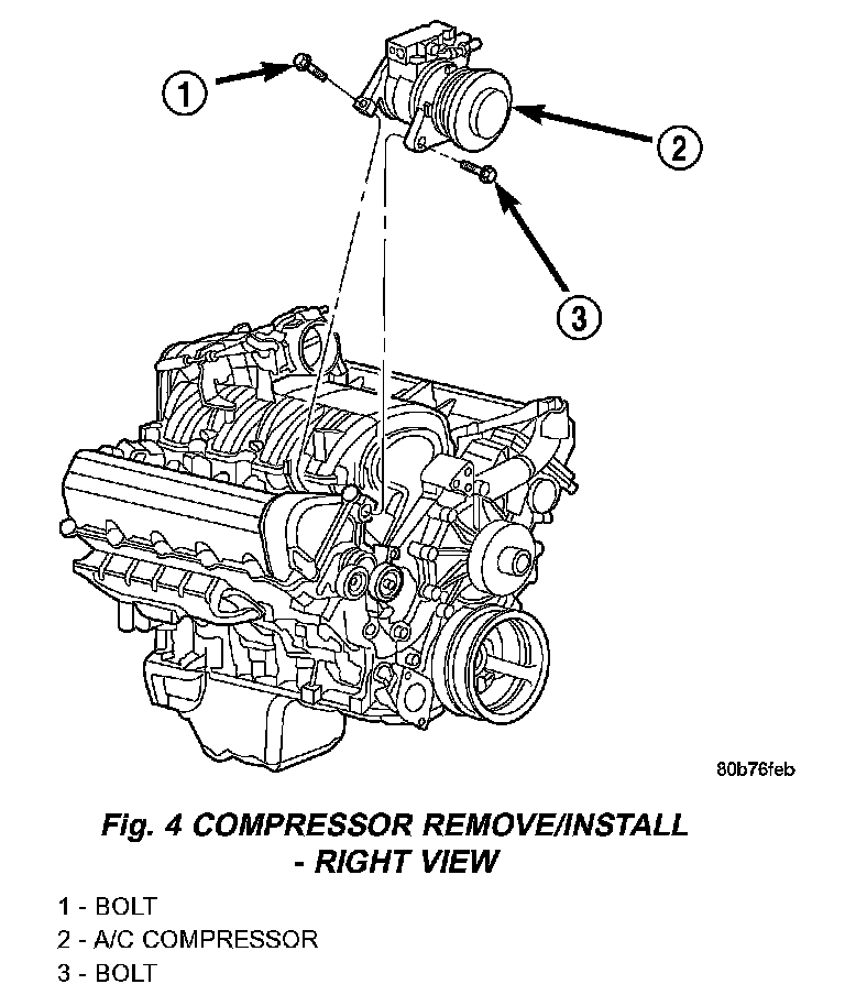Fig.4 Compressor Remove/Install - V8 Engine - Right View:
