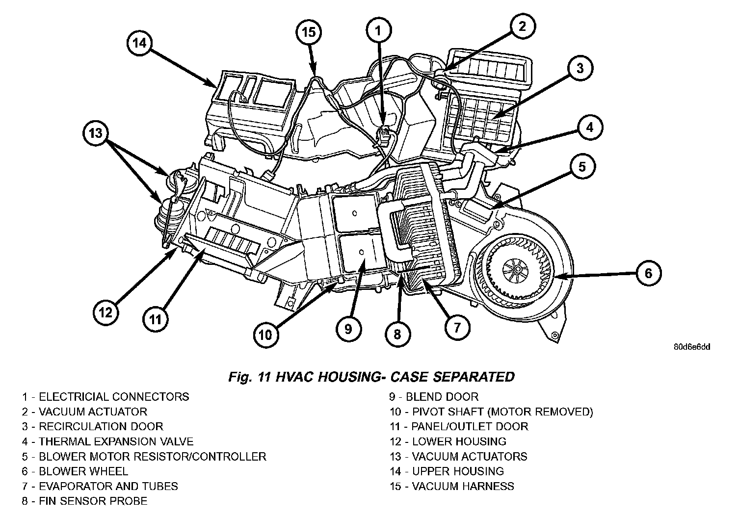 1. Remove and disassemble the HVAC housing. Service and Repair