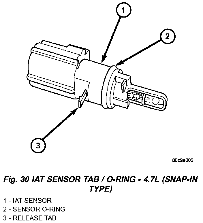 Fig. 30 IAT Sensor Tab/O-Ring - 4.7L (Snap-In Type):