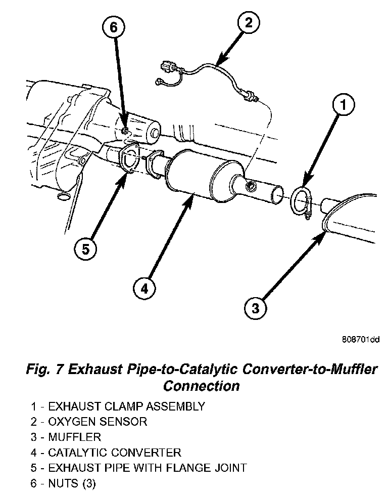 4. Loosen exhaust clamp from the catalytic converter and muffler connection.