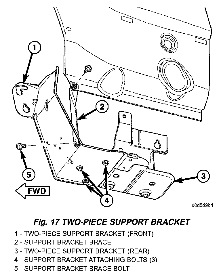 8. Tighten 3 support bracket bolts and brace bolt. Refer to Torque Specifications.