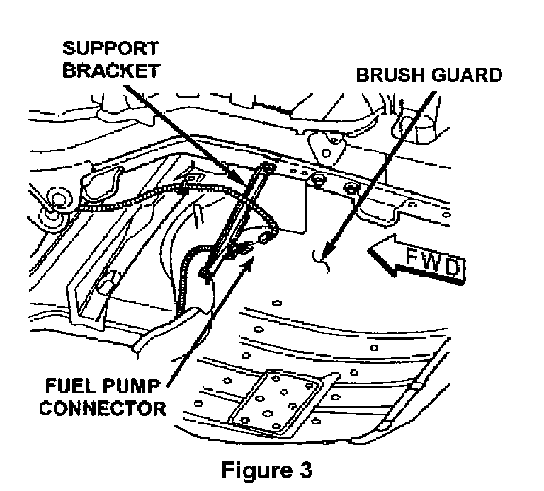 10. Using a large pry bar, reposition the fuel tank/brush guard assembly as far to the right side of the vehicle (passenger side) as possible.