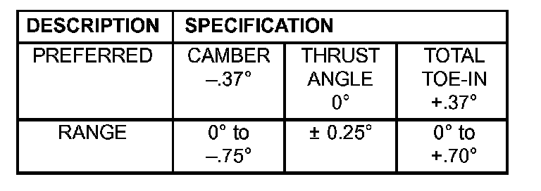 FRONT WHEELS - STANDARD SUSPENSION SPECIFICATIONS