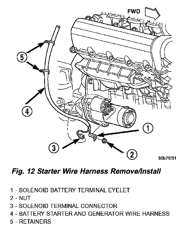 Fig.12 Starter Wire Harness Remove/Install - 4.7L Engine: