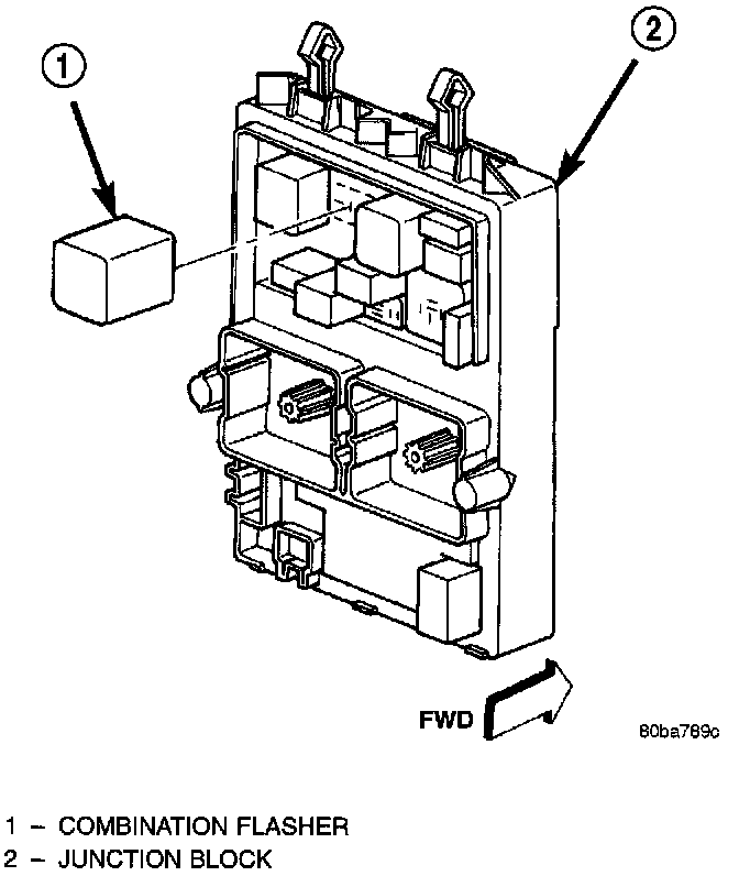 2. Align the rear window defogger relay terminals with the terminal cavities in the junction block receptacle.