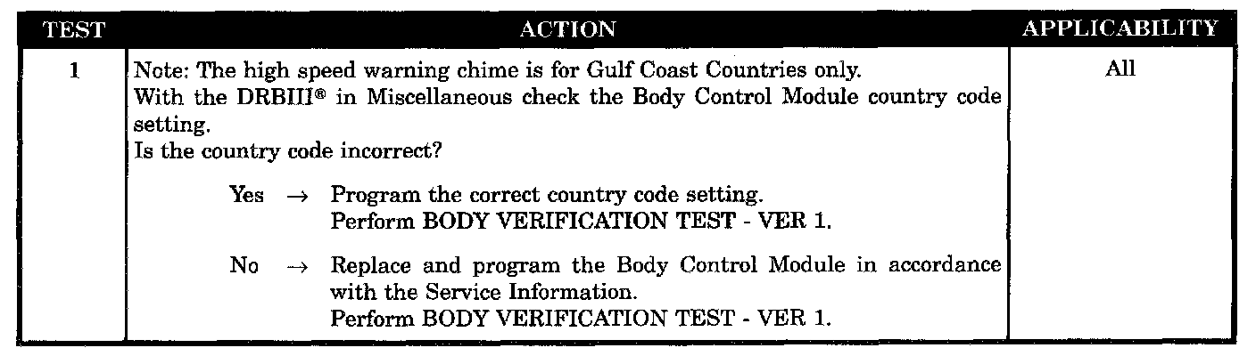 HIGH VEHICLE SPEED WARNING CHIME PROBLEM
