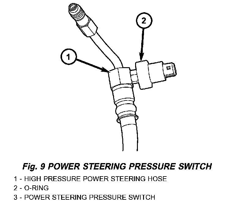 4. Remove switch. Use back-up wrench on power steering line to prevent line bending.