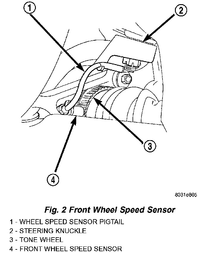 2. Apply Mopar Lock N' Seal or Loctite 242 on bolt that secures sensor in steering knuckle. Use new sensor bolt if original bolt is worn or damaged.