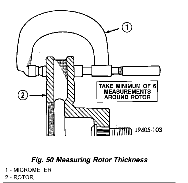Thickness should not vary by more than 0.013 mm (0.0005 inch) from point-to-point on the rotor. Machine or replace the rotor if necessary.