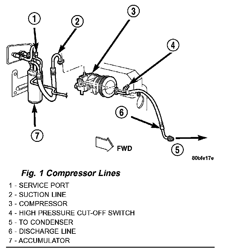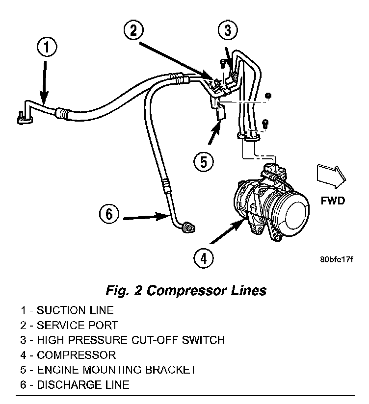 NOTE: If a replacement compressor is being installed, be certain to check the refrigerant oil level. See Refrigerant Oil Level in this group for the procedures. Use only refrigerant oil of the type recommended for the compressor in the vehicle.