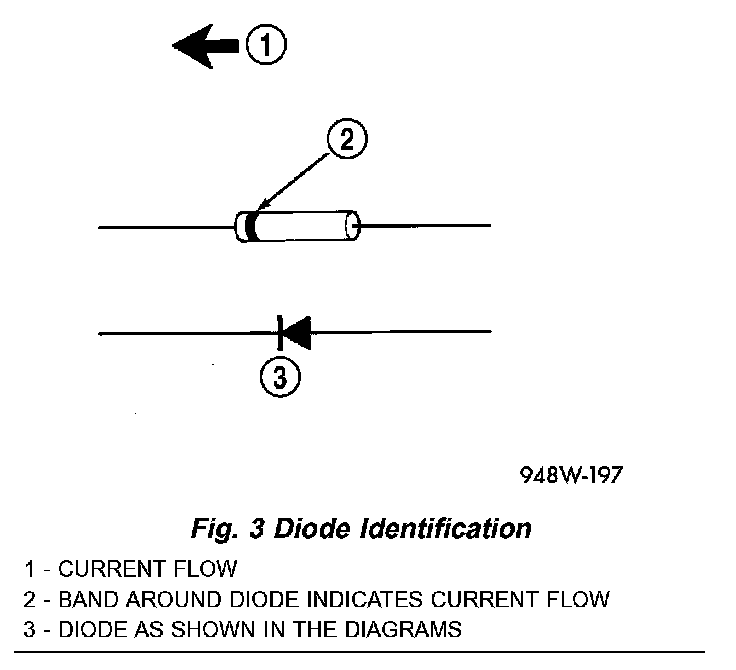 5. Install the new diode in the harness, making sure current flow is correct. If necessary refer to the appropriate wiring diagram for current flow.