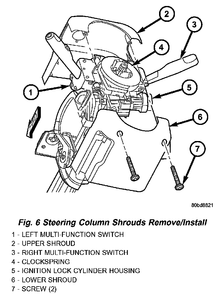 Fig.6 Steering Column Shrouds Remove/Install: