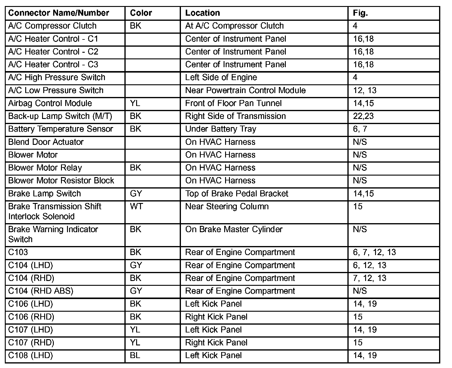 Connector Locations (Part 1 Of 6):