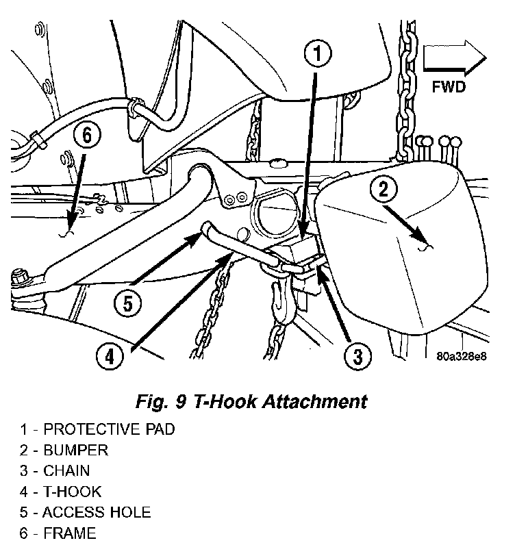 - Do not attach tow chains, T-hooks, J-hooks, or a tow sling to a bumper, steering linkage, drive shafts or a non-reinforced frame hole.