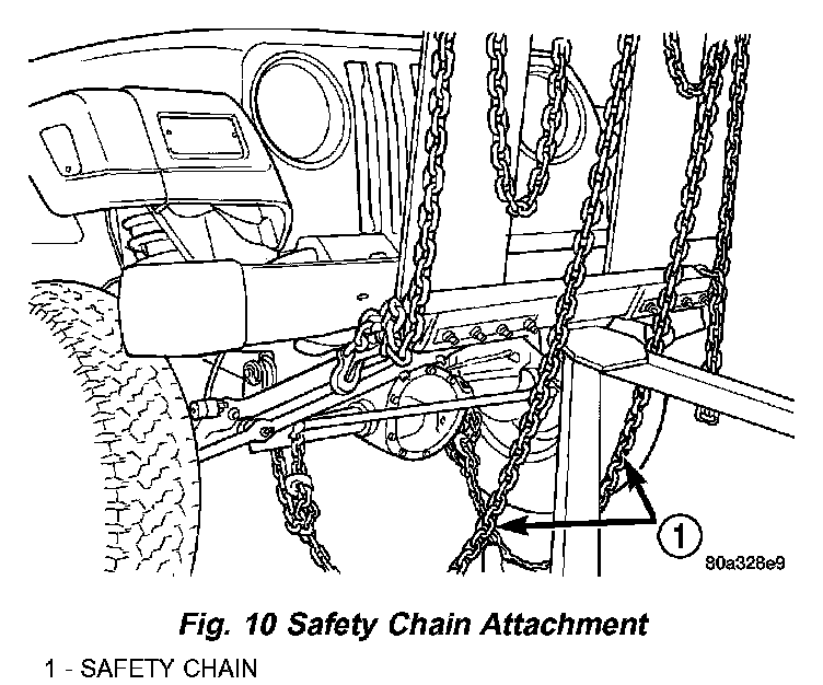 4. Attach the safety chains to the vehicle (Fig. 10).