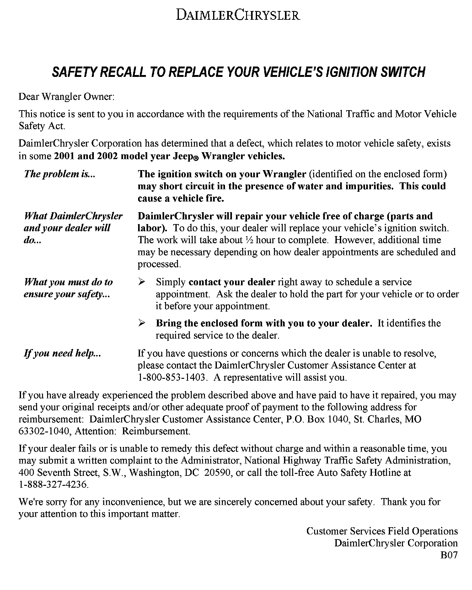 Recall - Ignition Switch Replacement