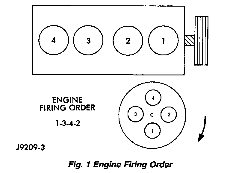 The cylinders are numbered 1 through 4 from front to rear. The firing order is 1-3-4-2 (Fig. 1).