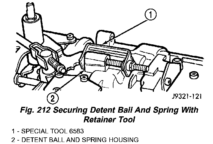 4. Secure detent ball and spring in housing with Retainer Tool 6583 (Fig. 212).
