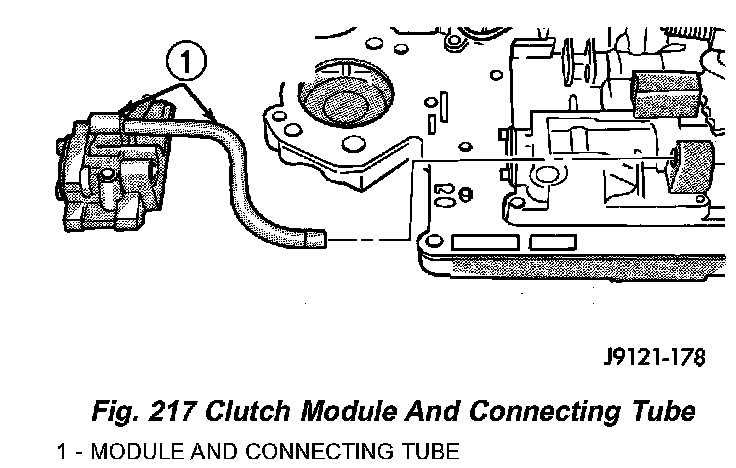 12. Remove screws attaching converter clutch module to valve body and remove module and connecting tube (Fig. 217).