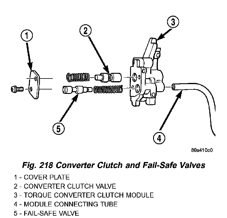 14. Remove converter clutch valve, fail safe valve, and springs (Fig. 218)