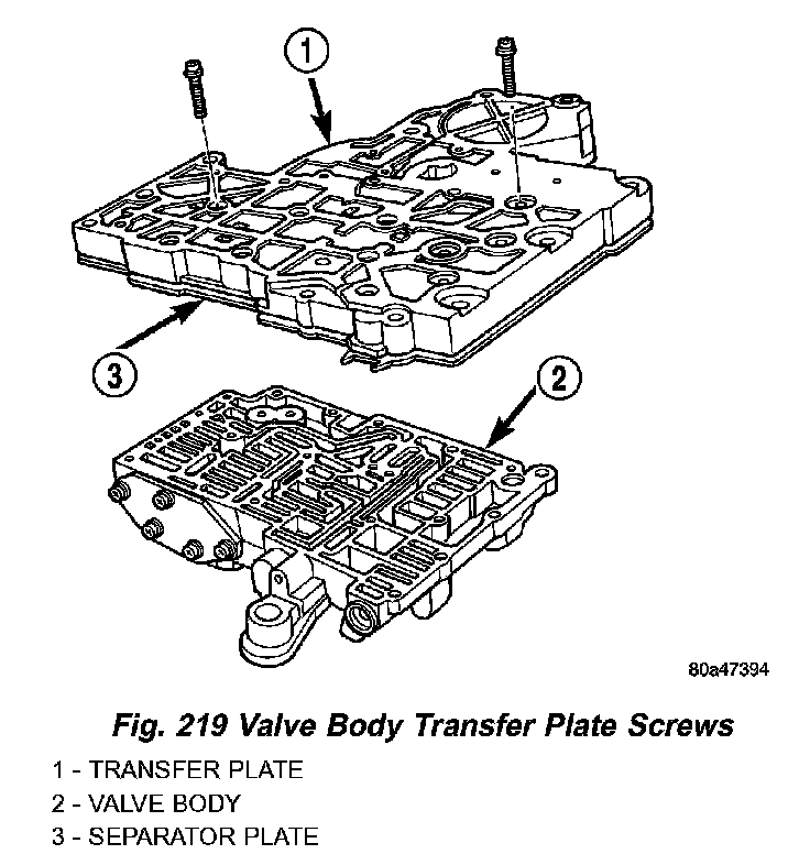 16. Remove screws attaching transfer plate to valve body (Fig. 219).