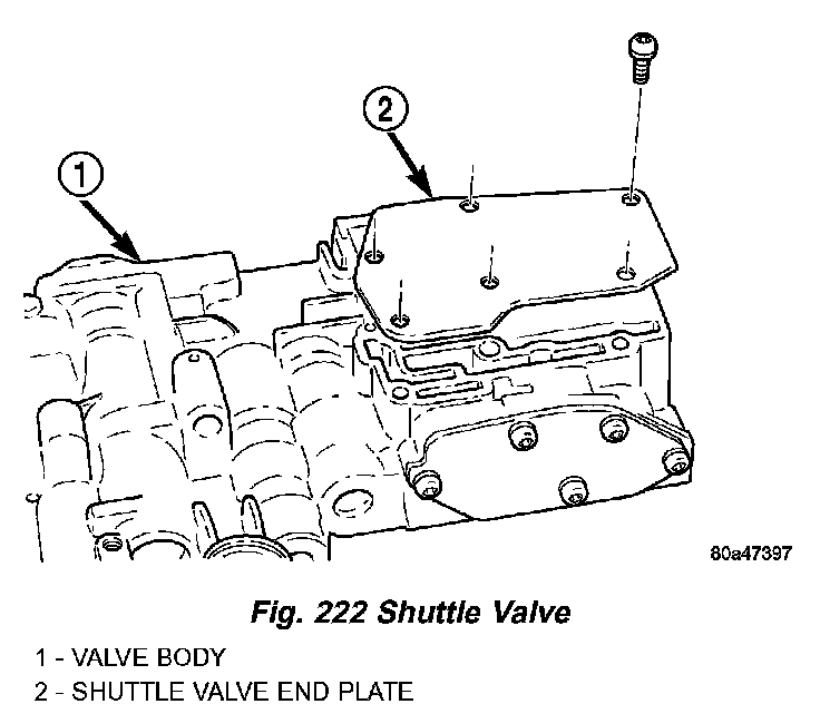 21. Install screws to attach shuttle valve end plate to valve body (Fig. 228).