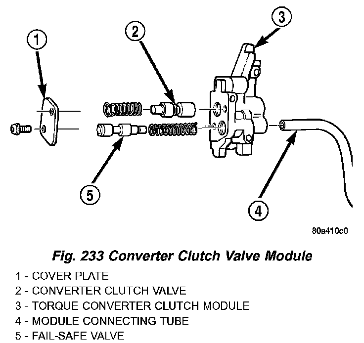 31. Place cover plate in position on converter clutch valve module (Fig. 233).