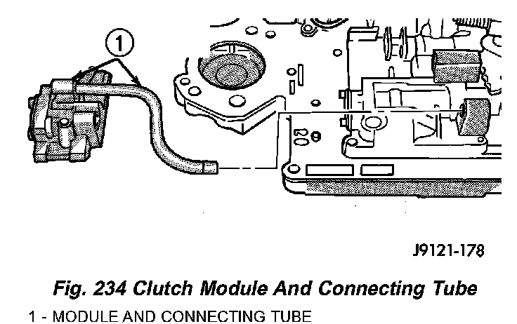 33. Insert connecting tube into converter clutch valve module (Fig. 233).