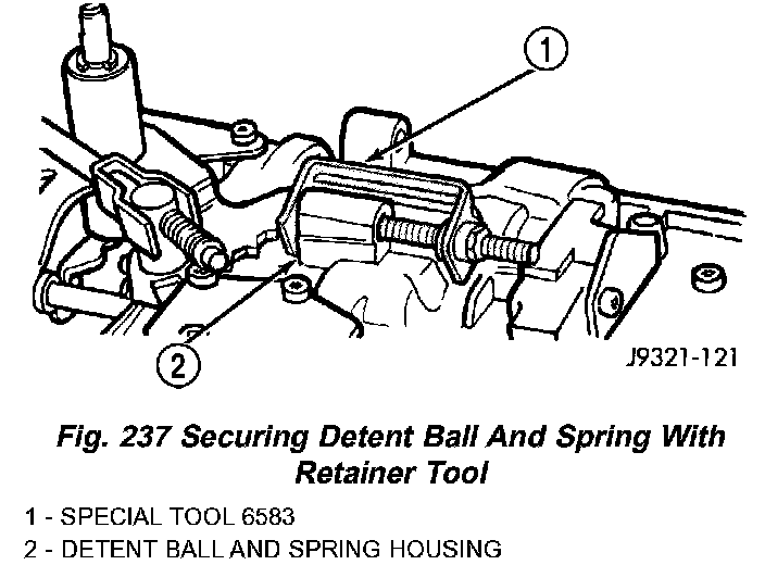40. Insert detent spring and ball into opening in valve body and install Retainer Tool 6583 (Fig. 237).