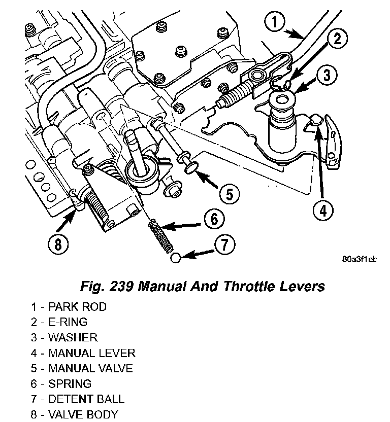 44. Install seal, washer, and E-clip to retain manual shaft to valve body (Fig. 239).