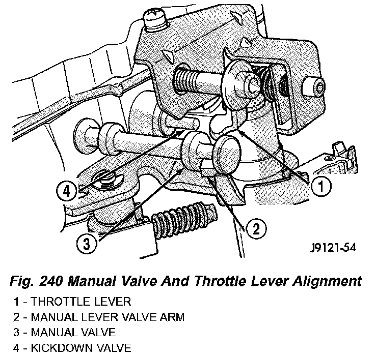 43. Insert throttle lever into groove in manual valve (Fig. 240).