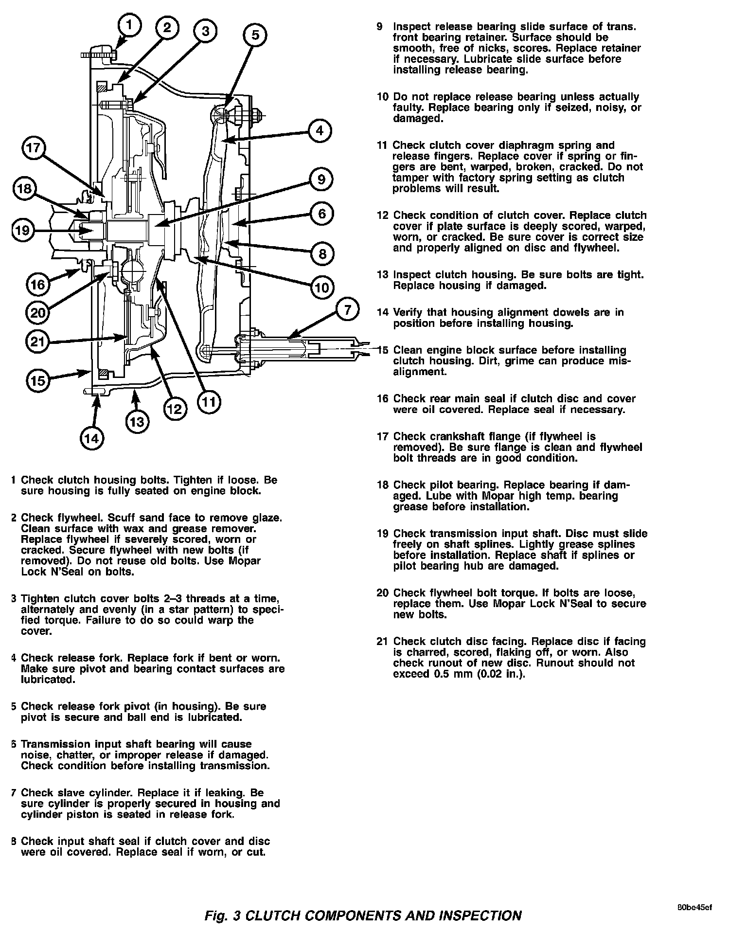The clutch inspection chart (Fig. 3) outlines items to be checked before and during clutch installation. Use the chart as a check list to help avoid overlooking potential problem sources during service operations.
