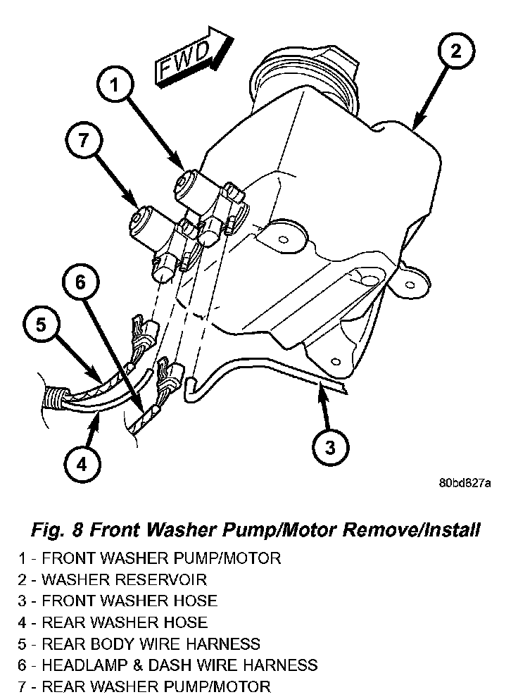 Fig.8 Front Washer Pump/Motor Remove/Install: