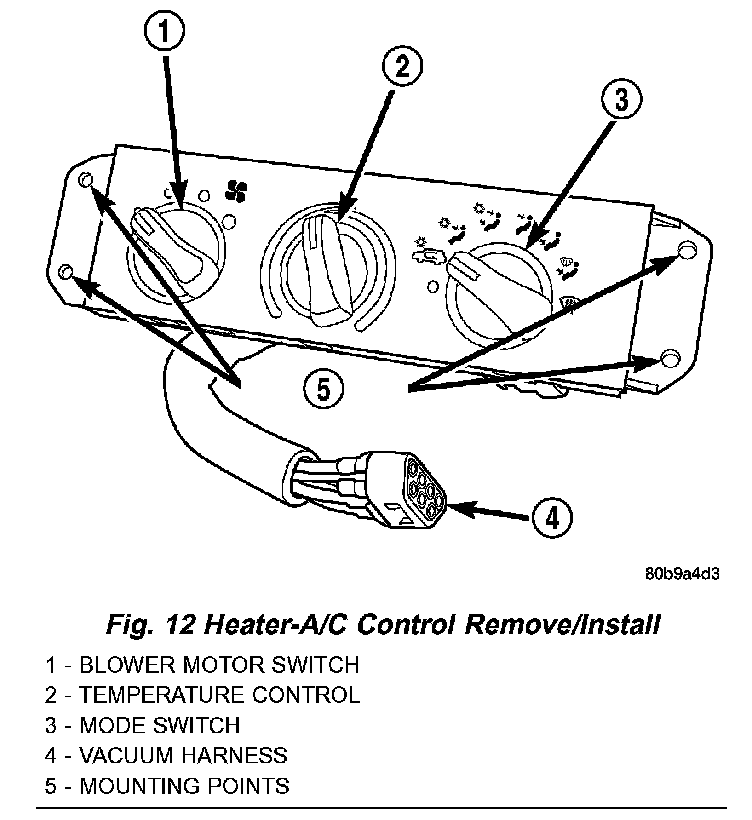 5. Remove the four screws that secure the heater- A/C control to the instrument panel.