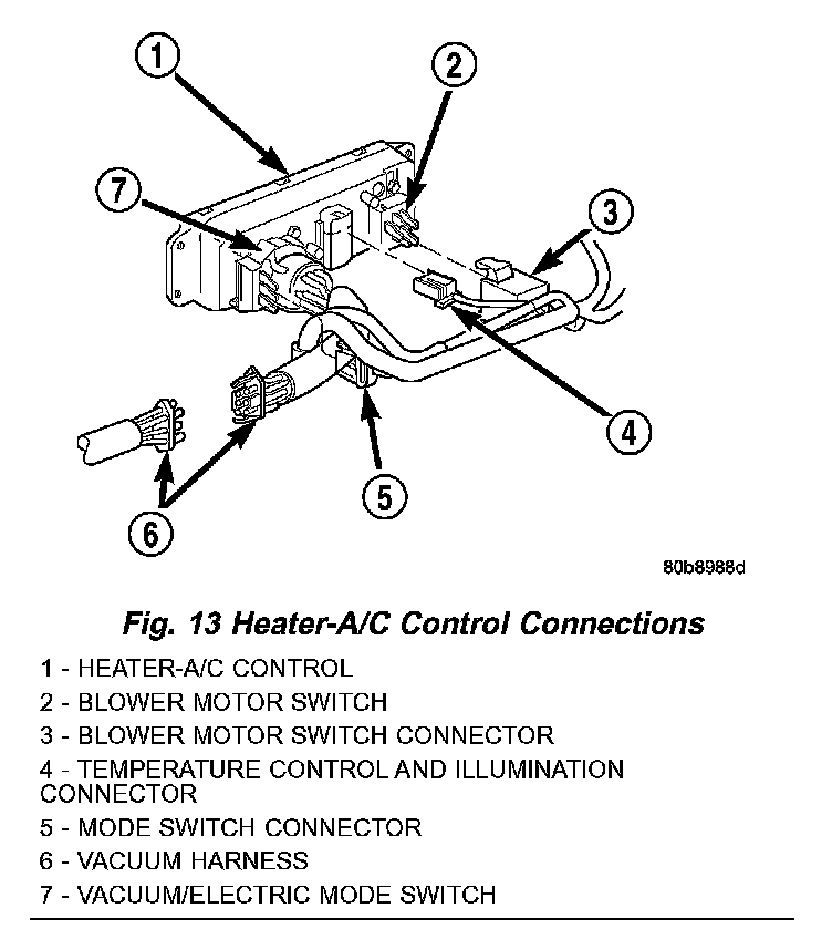 7. Unplug the three wire harness connectors from the back of the heater-A/C control.