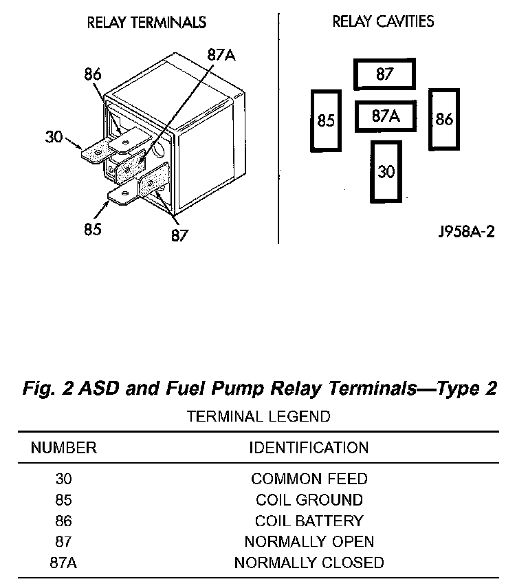 ASD AND FUEL PUMP RELAYSFig.1 ASD And Fuel Pump Relay Terminals - Type 1: