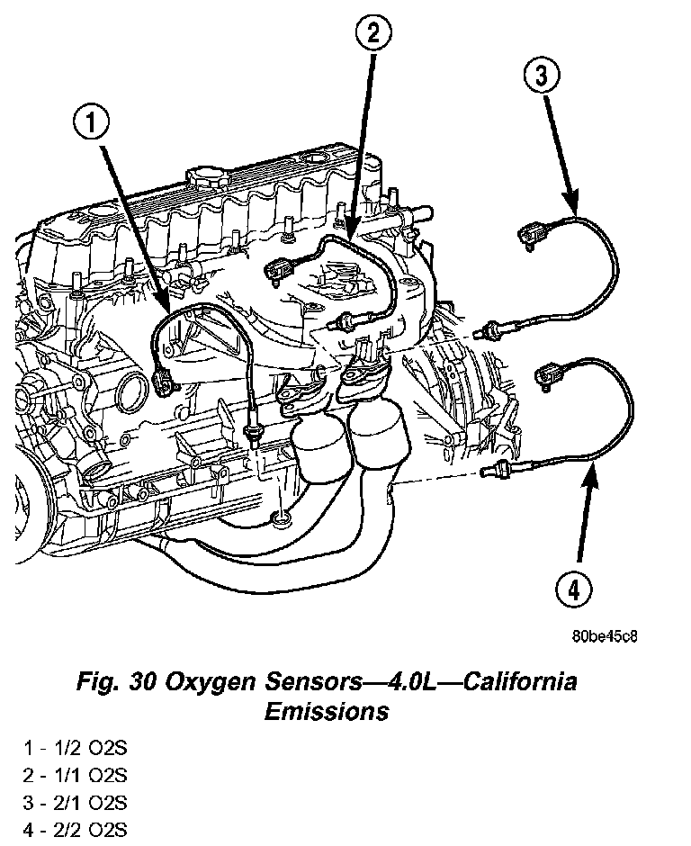 Fig.30 Oxygen Sensors - 4.0L - California Emissions: