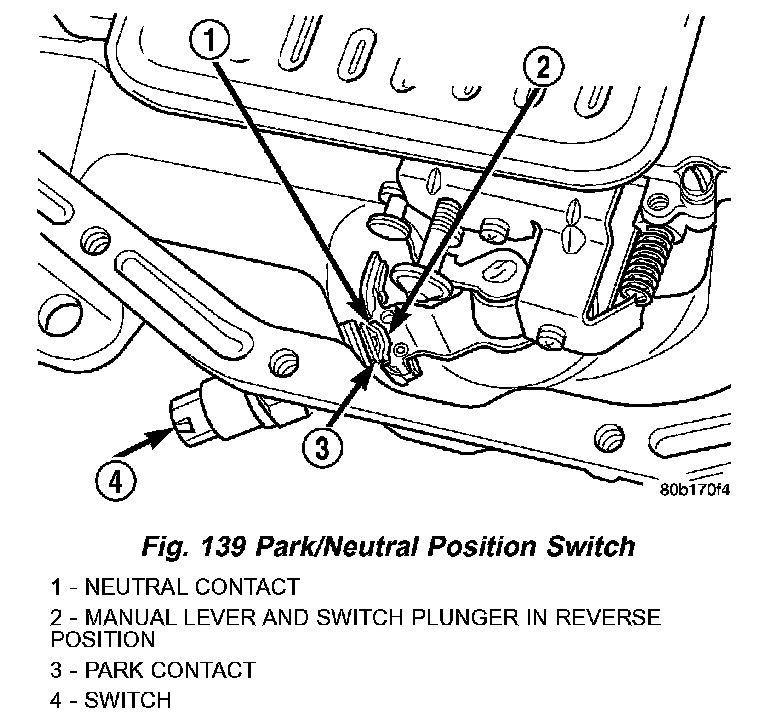 1. Move shift lever to PARK and NEUTRAL positions. Verify that switch operating lever fingers are centered in switch opening in case (Fig. 139).