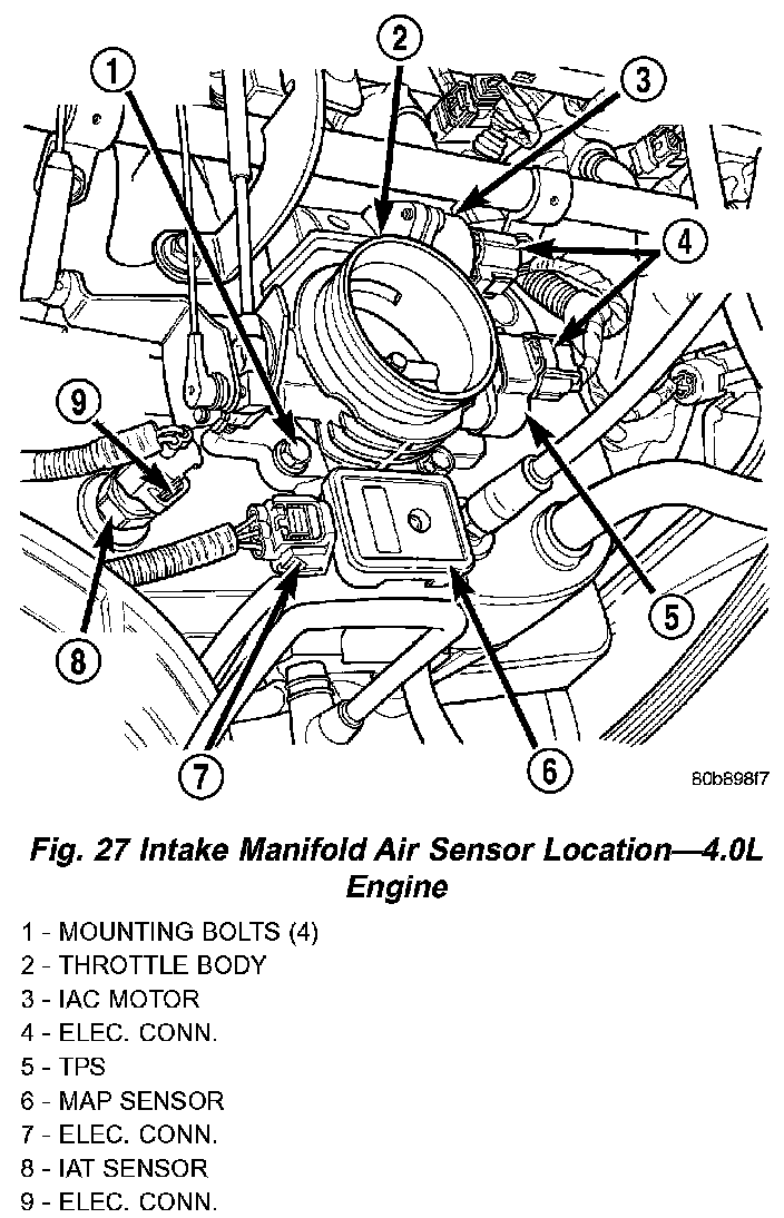 Fig. 27 Intake Manifold Air Sensor Location - 4.0L Engine: