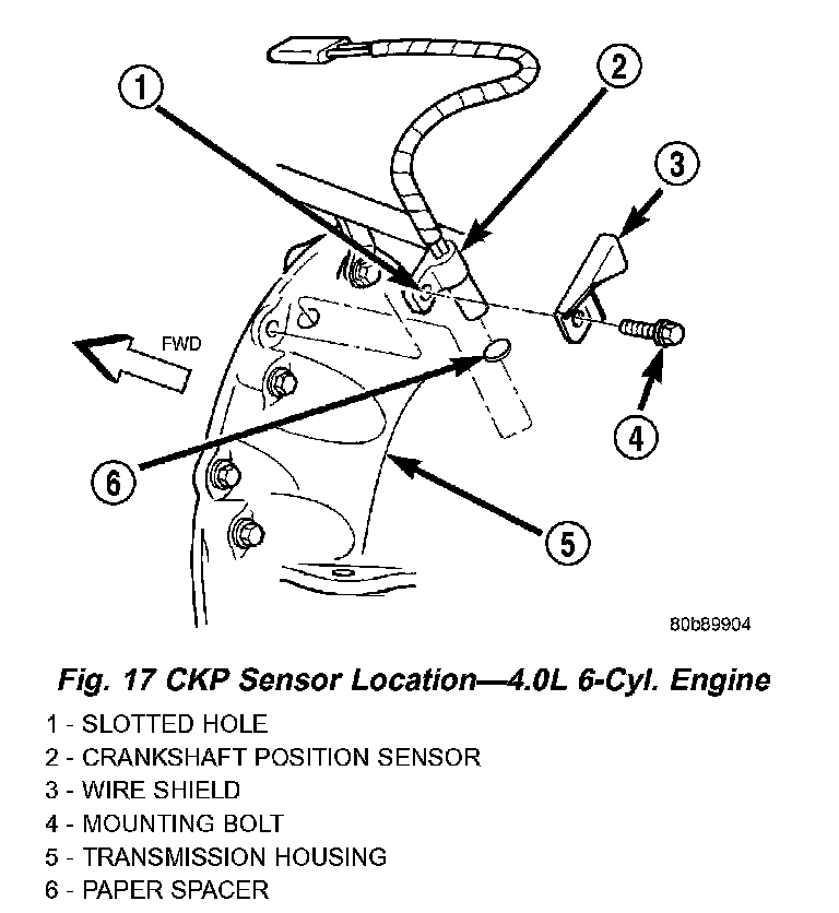 Fig. 17 CKP Sensor Location - 4.0L 6-Cyl. Engine: