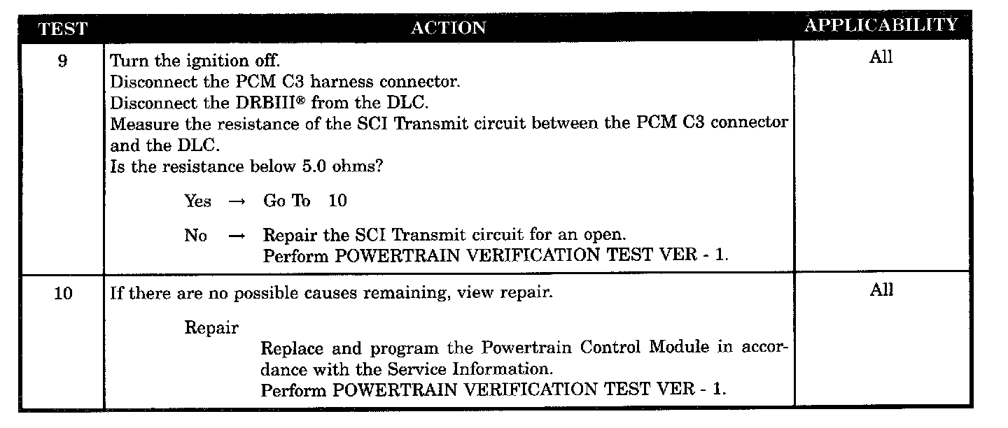 NO RESPONSE FROM PCM (SCI BUS) - GAS ONLY