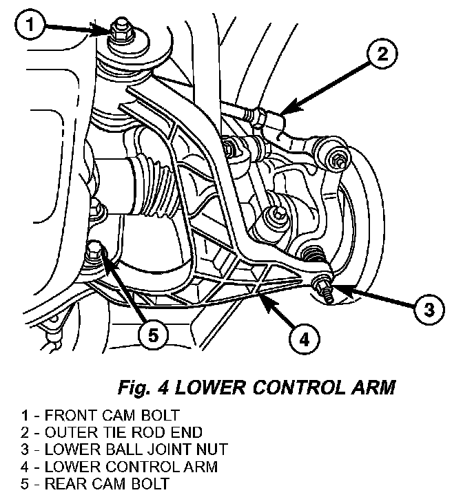 Camber and caster angle adjustments involve changing the position of the lower control arm cam bolts.