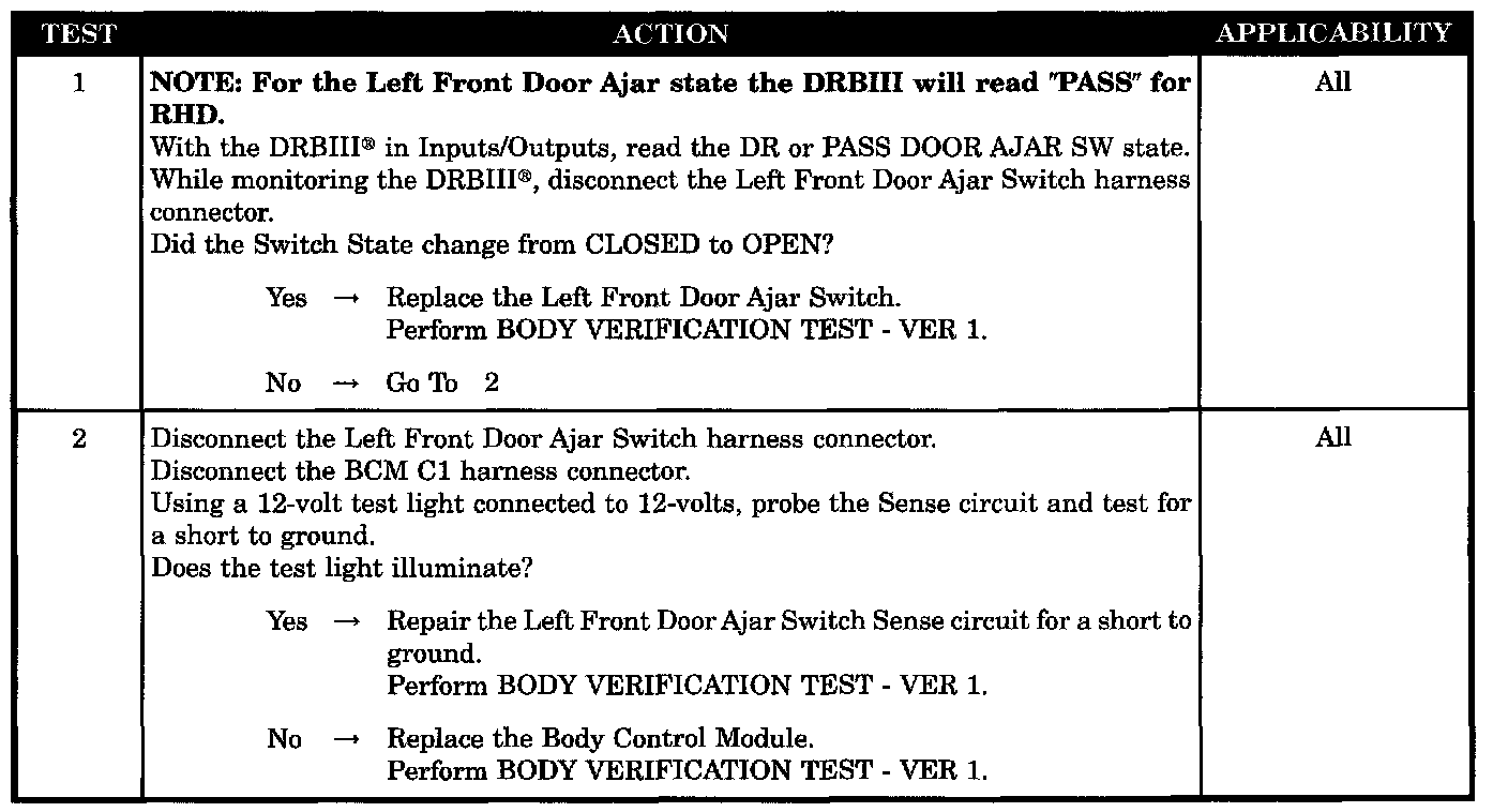 LEFT FRONT DOOR AJAR CIRCUIT SHORTED TO GROUND