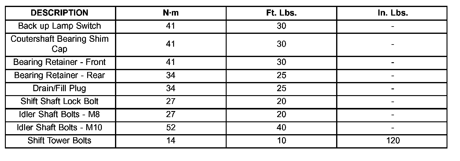 Countershaft Bearing Shim Cap 41 Nm (30 ft. lbs.)