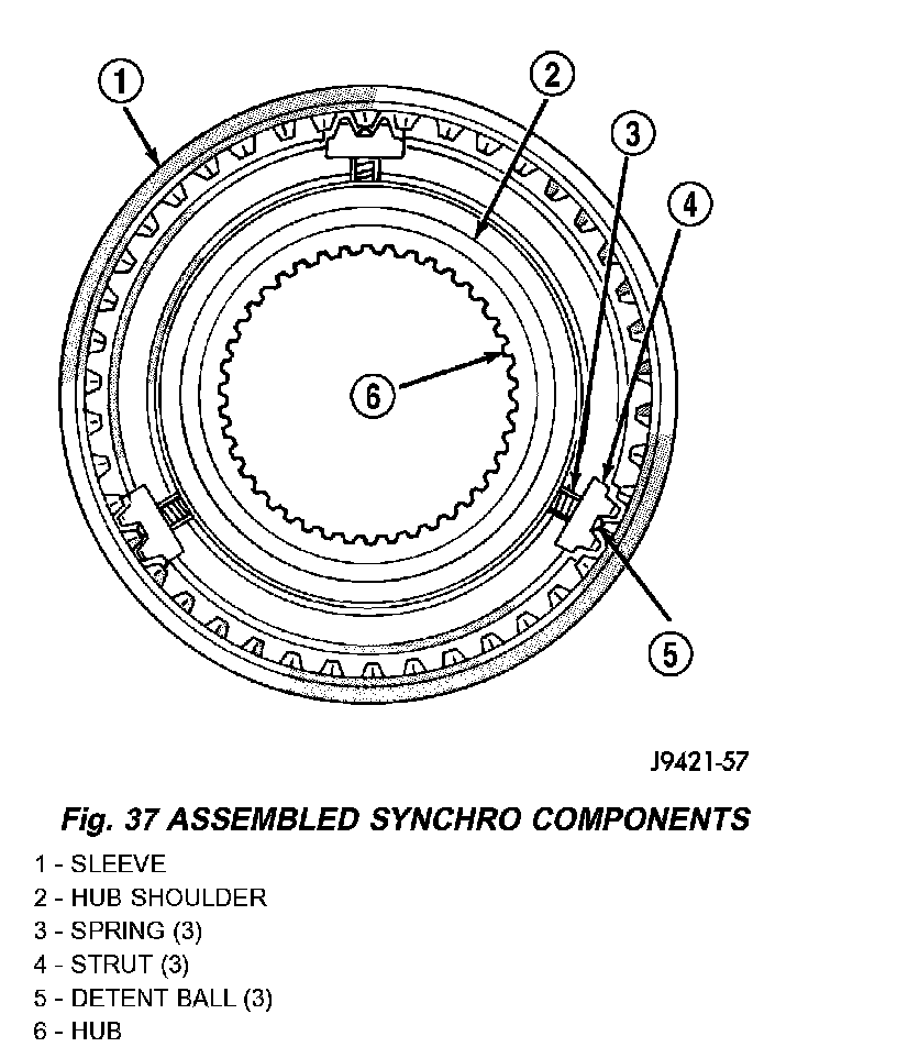 NOTE: The easiest method of assembling each synchro is to install the springs, struts and detent balls one at a time.