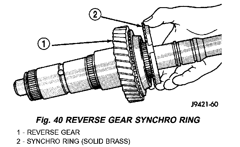 3. Install solid brass synchro ring on reverse gear.