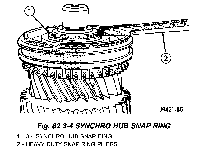 30. Install 3-4 synchro hub new snap ring with thickest snap ring that will fit in shaft groove. Verify snap ring is seated in groove.